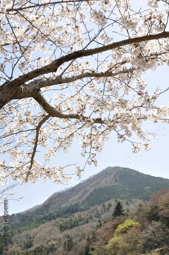 © Green Cap 55, Obraz premium 鳥ノ胸山と桜