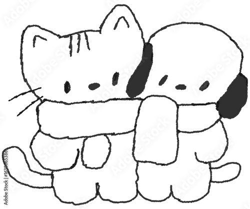 © titi.drawing, Fototapeta premium 목도리 두른 고양이와 강아지 선 손그림 스티커