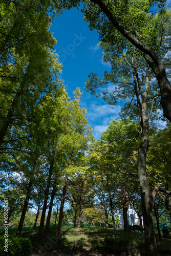 Obraz premium 青空と木々の緑