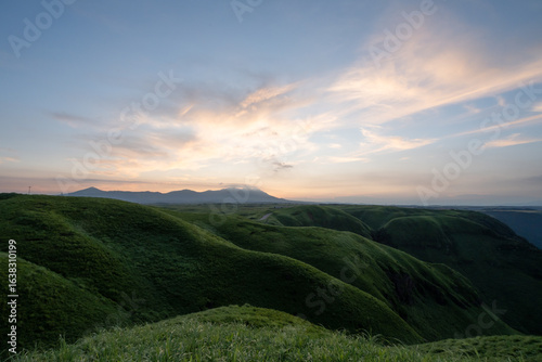 © 千帆 大木, Naklejka premium 大観峰から眺めるくじゅう連山、外輪山の山並みと朝焼け