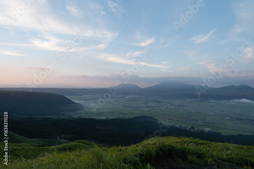© 千帆 大木, Obraz premium 大観峰から眺める北外輪山と阿蘇五岳の山並みと阿蘇谷