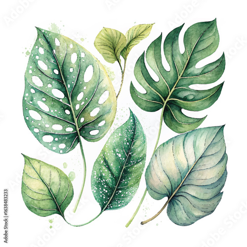 © Chinu Akter, Fototapeta premium リーフ葉水彩画イラスト素材 セット