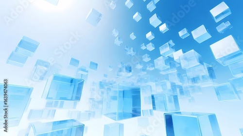 © 小さな花, Fototapeta premium 抽象的な青と白のキューブの背景と未来的なデジタル技術のコンセプトデザイン