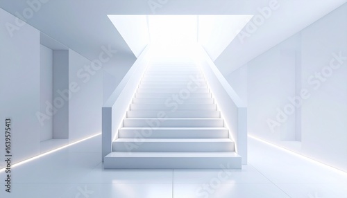© tatejima, Obraz premium 光が差す白い階段 シンメトリー