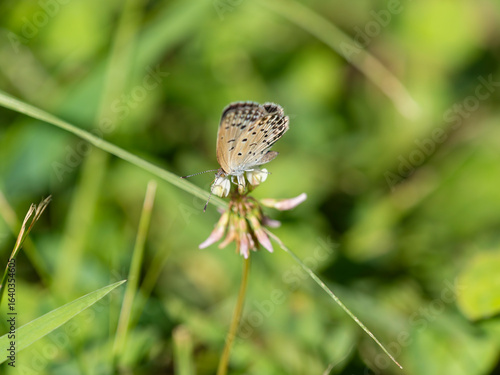 Obraz premium シロツメクサの花の蜜を吸うヤマトシジミ