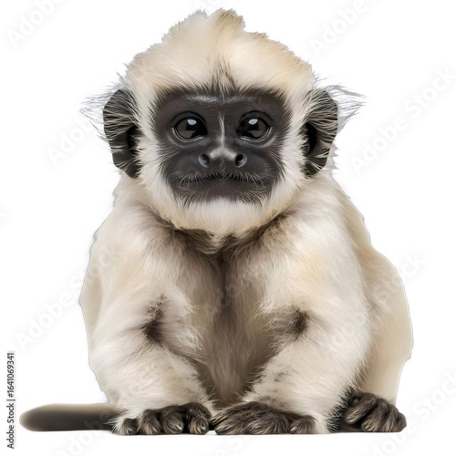 © TWPNG, Obraz premium 白背景に座っている愛らしい白い毛皮の猿の赤ちゃんのポートレート