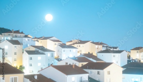 © uumm, Fototapeta premium 美しい月夜の夜の街並み