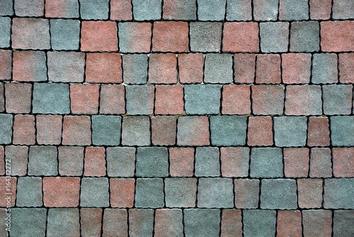 © butus, Obraz premium текстура из мелкой цветной квадратной тротуарной плитки на дороге