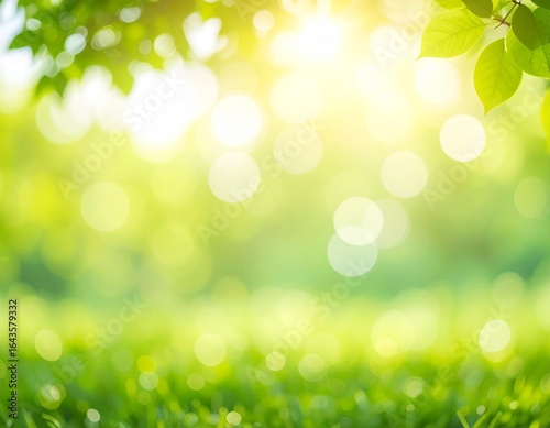 © Kei Shishimi, Fototapeta premium 木の葉から差し込む日差し 緑のキラキラしたボケの背景イラスト