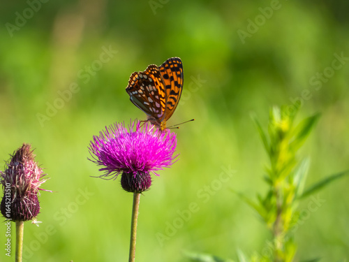 © りんりんデジタル工房, Obraz premium ノアザミの蜜を吸うウラギンヒョウモン:夏の美ヶ原高原の生命の輝き