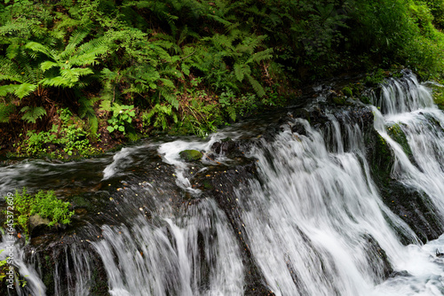 Fototapeta premium 森の中を勢いよく流れる白糸の滝