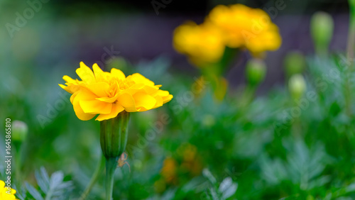 © Kazutaka, Fototapeta premium 鮮やかな黄色のマリーゴールドの花のクローズアップ