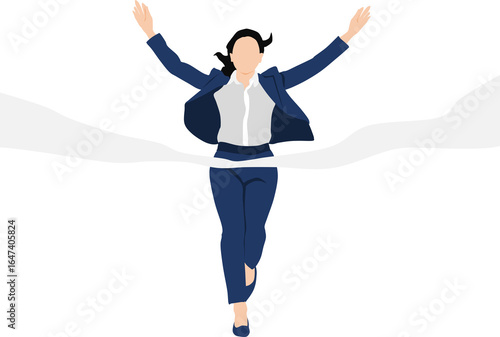 Obraz premium 1位でゴールテープを切った女性のイラスト