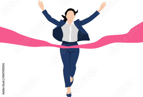Obraz premium 1位でゴールテープを切った女性のイラスト