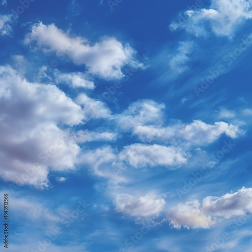 © Adrien, Obraz premium 맑고 청명한 파란 하늘과 흩날리는 구름