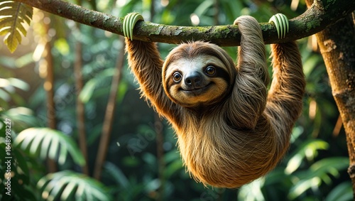 Obraz premium 木の上でのんびり過ごすナマケモノ、ほのぼのとした動物イラスト