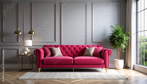 © uumm, Fototapeta premium シンプルな赤いソファ