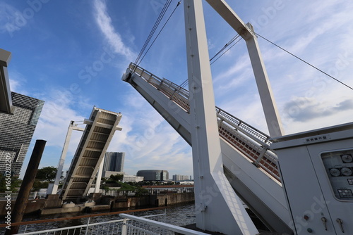 Obraz premium 道路が跳ね上がった状態の跳ね橋