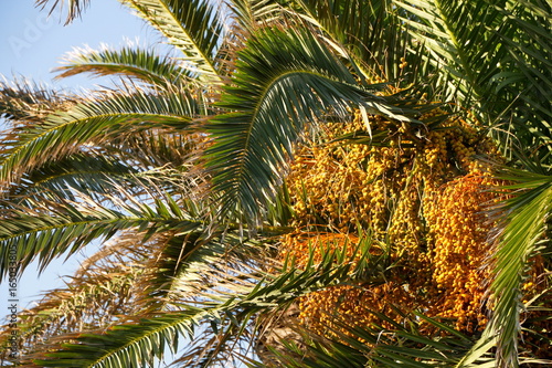 Fototapeta premium финиковая пальма на фоне неба крупным планом