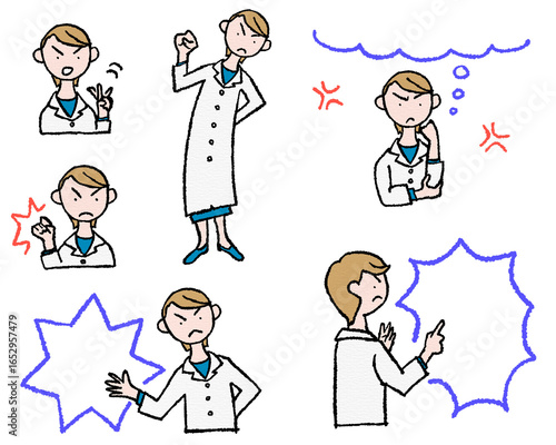 Obraz premium 白衣の女性研究者が説明するイラスト