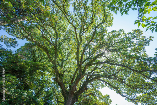 Obraz premium 境内に立つ北限の巨木タブノキの霊木