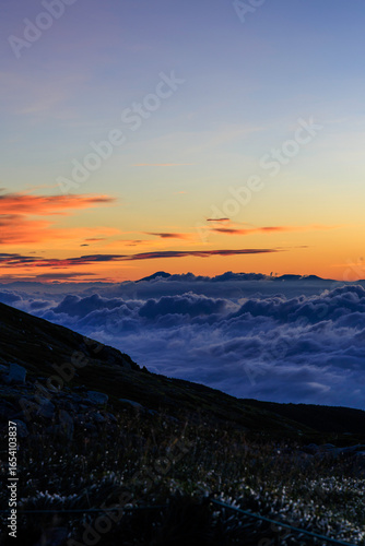 Obraz premium 雲海に広がる八ヶ岳のシルエットと夜明け直前の空