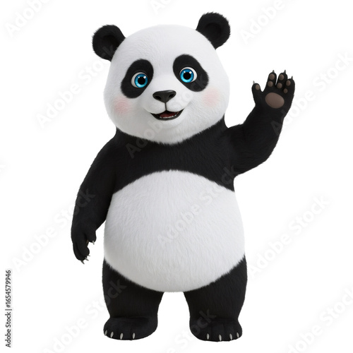 Naklejka premium 陽気なパンダの手振り挨拶 ポップな漫画スタイル 透明背景