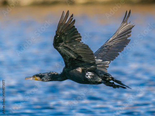 Obraz premium 水辺を飛ぶカワウ