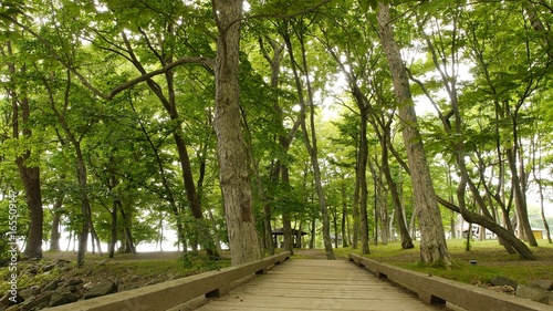 © hoshi, Fototapeta premium 森の中 小さな川の流れ 木製の橋
