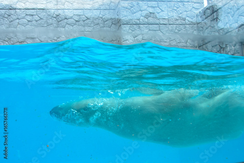 Obraz premium 大迫力 水中を泳ぐシロクマ