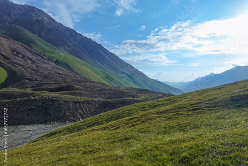 © Morito Kanehara, Fototapeta premium キルギス_バルスコオン-ドングルメ川沿いのトレイル