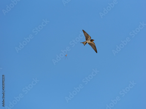 Obraz premium トンボを追いかけるツバメ