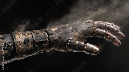 © bephoto, Fototapeta premium 工業的質感の機械の手が触れ合う瞬間表現構図