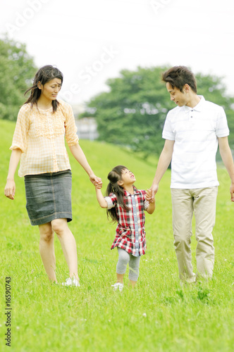 Fototapeta premium 両親と手をつないで歩く女の子