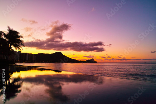 Obraz premium ハワイ 夜明け前のワイキキ