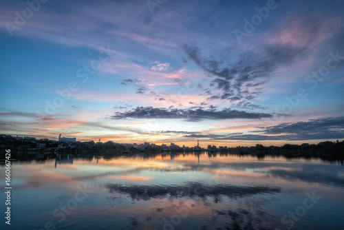 Obraz premium 茨城県水戸市 千波湖の日の出風景