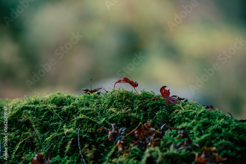 © IEPPEI, Obraz premium 苔の上に落ちた紅葉の葉と秋の彩り