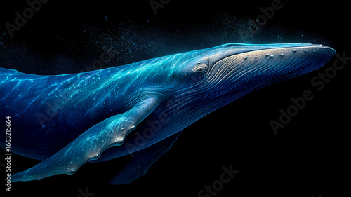 Fototapeta premium 澄んだ海を進む若いシロナガスクジラ