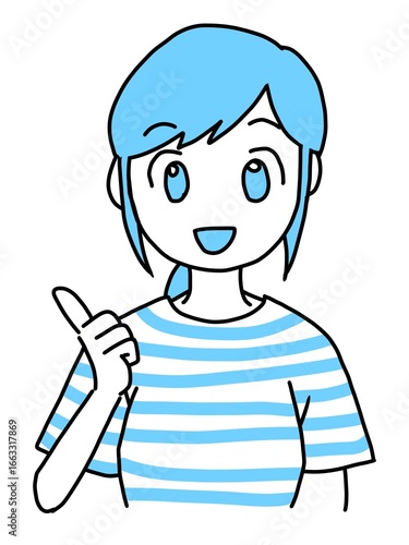 © watamizu, Obraz premium 笑顔で説明する若い女性(青)