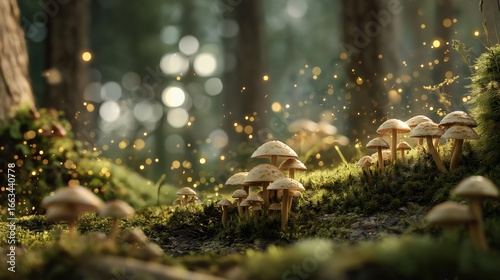 Obraz premium 神秘的な光が差し込む幻想的な森のキノコ