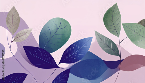 Obraz premium エレガントな北欧風ボタニカルリーフ ピンク背景