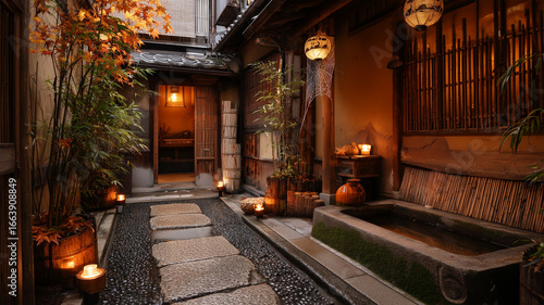 Fototapeta premium 京都町家路地の静かな飾り夜景