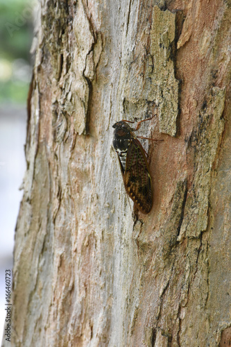 Obraz premium 木にとまるセミ(アブラゼミ)