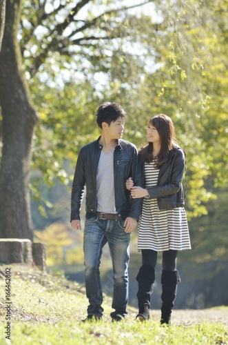 © MOMOTAROU, Fototapeta premium 秋の公園でデートするカップル