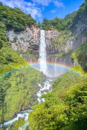 © ama3guri3, Fototapeta premium 夏の青空の下、虹がかかる壮大な華厳の滝