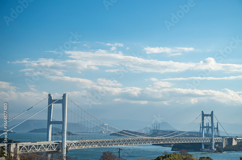 Fototapeta premium 日本の岡山にある瀬戸大橋と青空