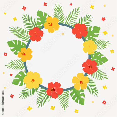 © Ken T, Obraz premium トロピカル植物の円形フレームを彩るデザイン