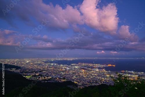 © 資雄 西岡, Fototapeta premium 摩耶山掬星台から見るブルーアワーの夜景 広角