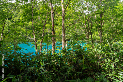 Obraz premium 青い湖面が美しい志賀高原・大沼池
