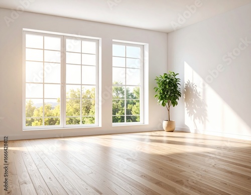 © DESIGN ARTS, Obraz premium 大きな窓と観葉植物のある室内